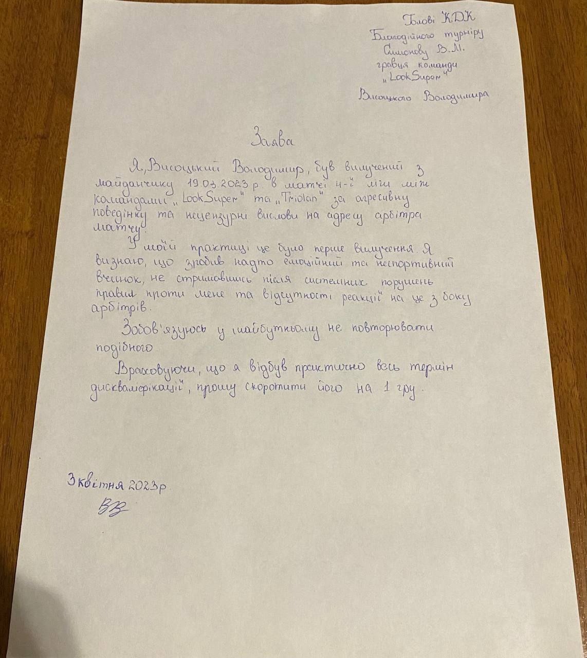 Листи з проханням про зменшення терміну дискваліфікації